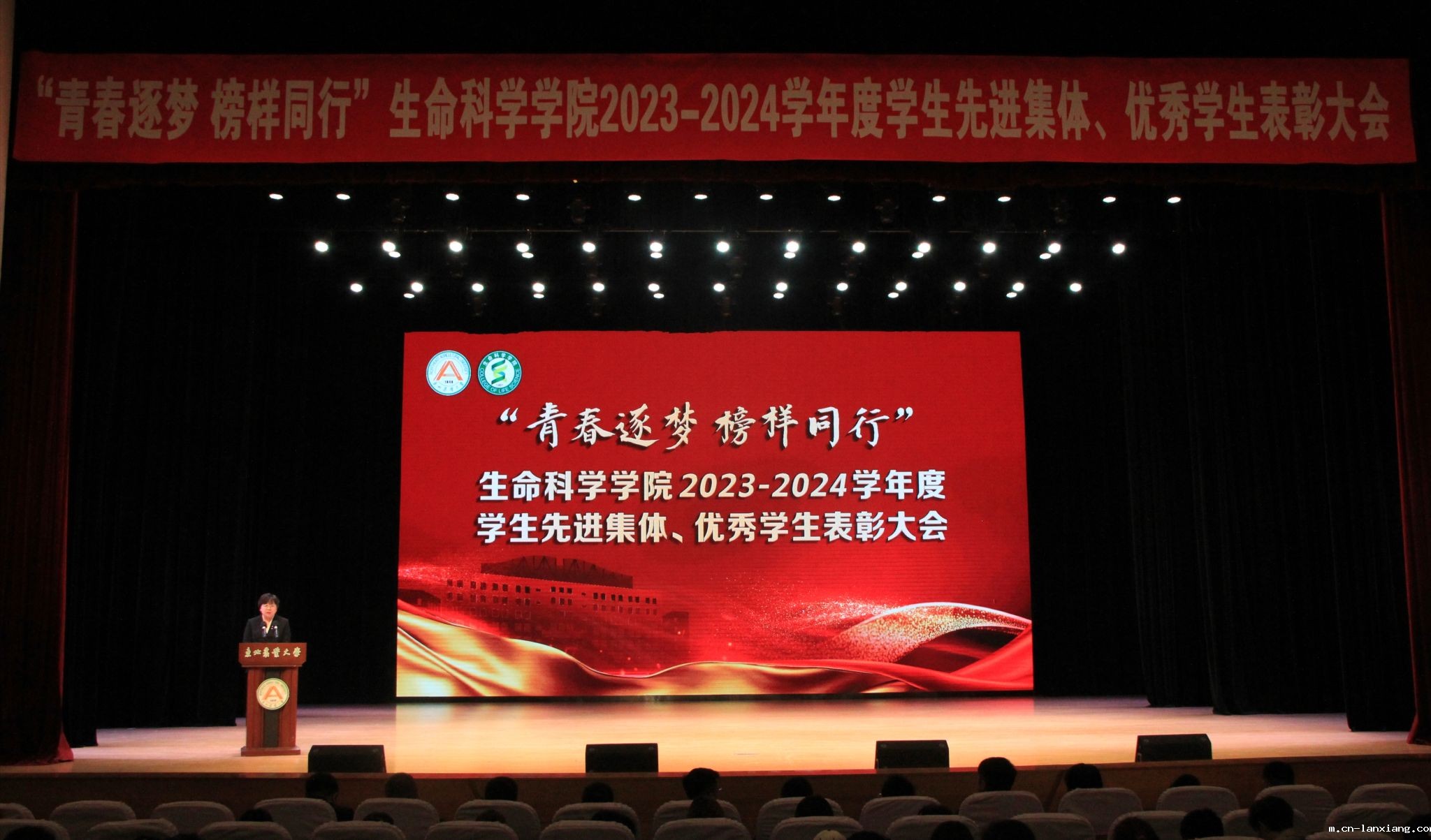 为进一步落实立德树人根本任务,充分发挥榜样示范引领作用,激发全体学生向身边榜样看齐、向优秀典型学习,营造创先争优、共同发展的学习氛围。5月22日,生命科学学院在音乐厅举办“青春逐梦 榜样同行”2023-2024学年度学生先进集体、优秀学生表彰大会。学生工作部部长汪志君,招生就业处处长潘俊波,校团委书记吕嘉昌,学院全体领导班子,教师代表,全体辅导员及全院学生参加会议,会议由学院党委副书记李水童主持。